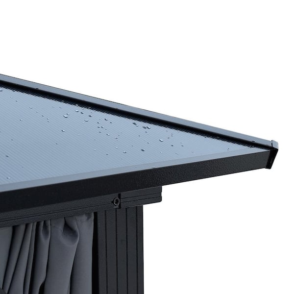 12 ft. x 16 ft. Outdoor Grey Aluminum Hardtop Gazebo with Resin Double Roof with Curtain and Netting