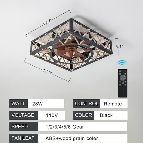 12 in. Indoor Black Flush Mount Caged Low Profile Farmhouse Ceiling Fan with Remote Control and 5 LED Bulbs Included