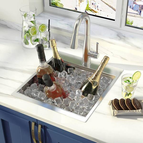 13 in. Drop-In Single Bowl 18 Gauge Brushed Chrome Stainless Steel Kitchen Sink with Bottom Grids