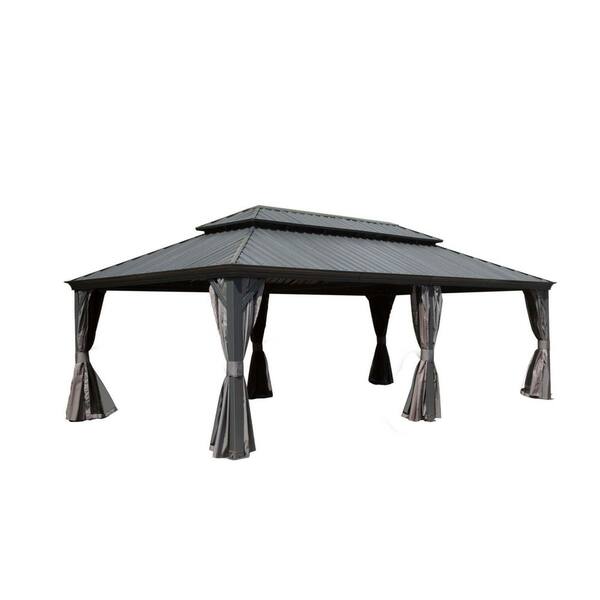 14 ft. x 22 ft. Grey Outdoor Gazebo with Curtains and Netting