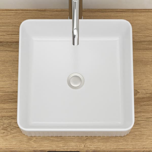15.69 in. Vessel Square Bathroom Sink in White Ceramic