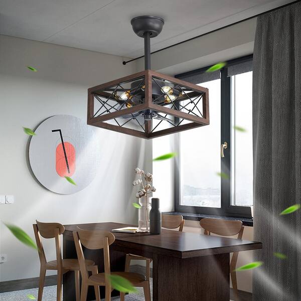 18 in. Indoor Brown Caged Ceiling Fan with Integrated LED with Remote Included (No Warranty On Bulbs)