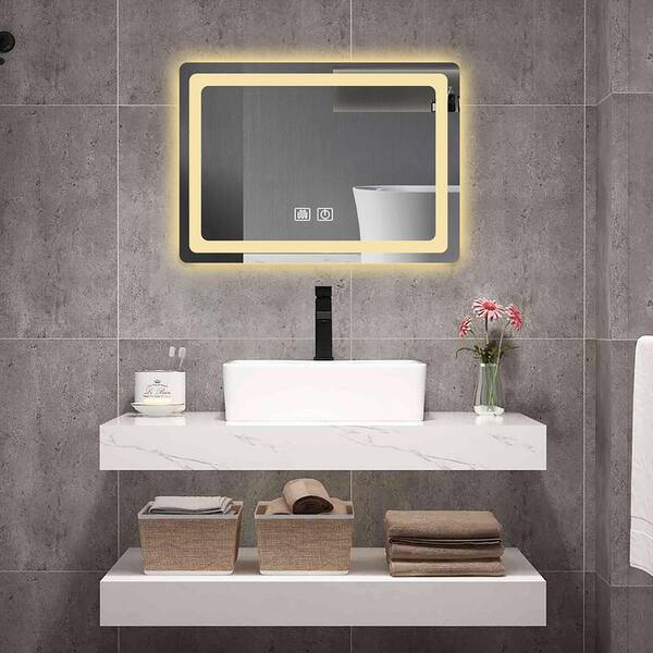 27.56 in. W x 19.69 in. H Rectangular Glass Frameless Anti-Fog Wall Mounted Bathroom Vanity Mirror in Natural