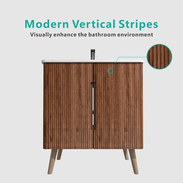 30 in. W x 18.3 in. D x 32.48 in. H Single Sink Freestanding Bath Vanity in Walnut with White Ceramic Top