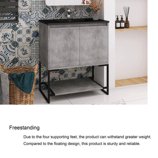 30 in. W x 18.9 in. D x 34.65 in. H Freestanding Bath Vanity in Concrete Gray with Black Quartz Sand Top