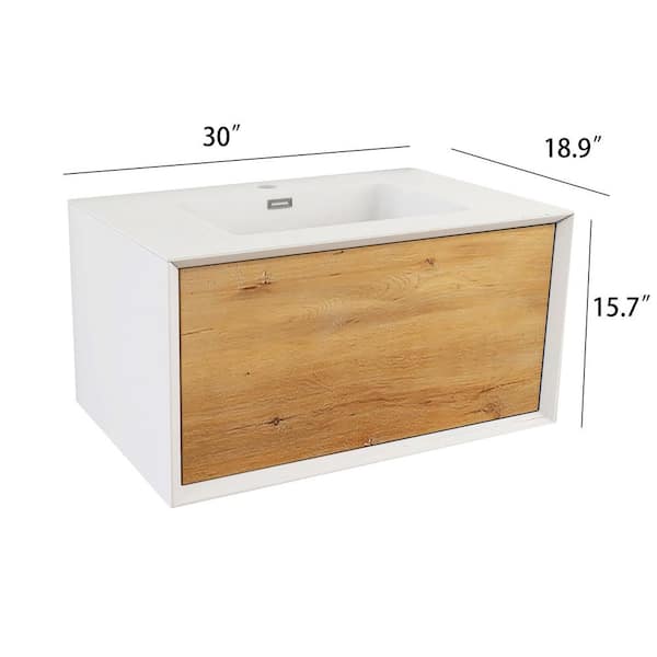30 in. W x 19 in. D x 16 in. H Bath Vanity Cabinet in White and Oak with White Solid Surface Top