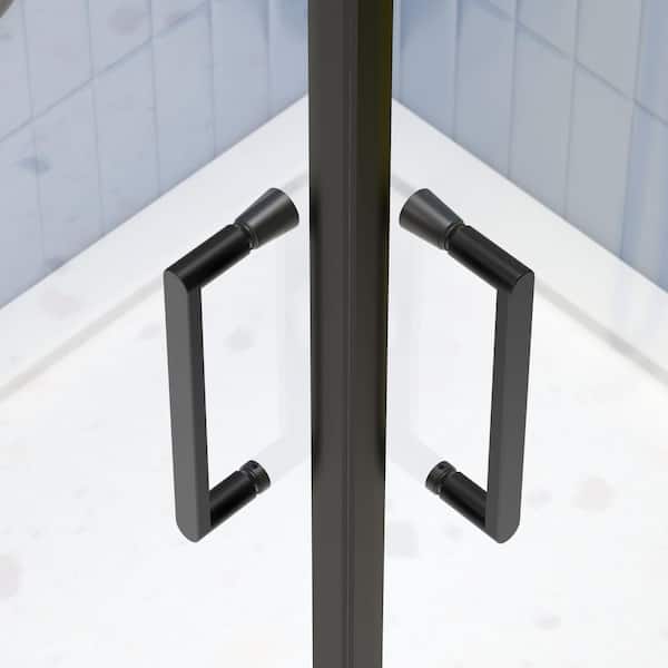 34.625 to 35.48 in. W x 72 in. H Corner Shower Door Framed in Matte Black Finish with Clear Glass