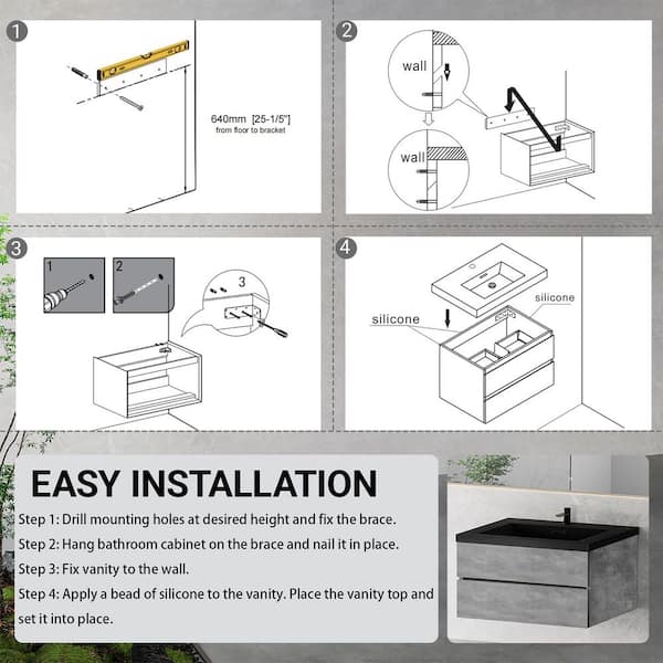 35.5 in. W x 19.7 in. D x 22.5 in. H Single Sink Wall Mounted Bath Vanity in Cement Grey with Black Quartz Sand Top