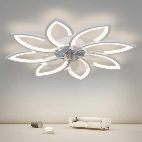 35 in. Smart Indoor White Ceiling Fan with Integrated LED with Remote Control