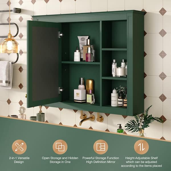 35 in. W x 27.5 in. H Green Rectangular MDF Medicine Cabinet with Mirror
