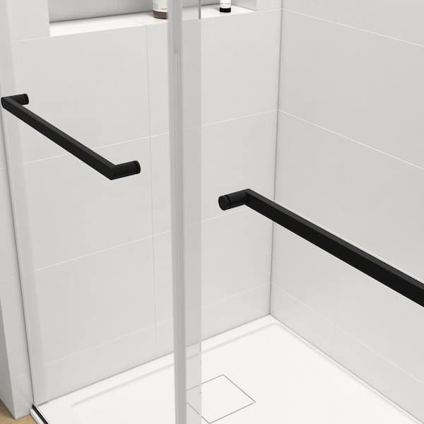 44 to 48 in. W x 76 in. H Sliding Frameless Shower Door in Matte Black Finish with Clear Glass