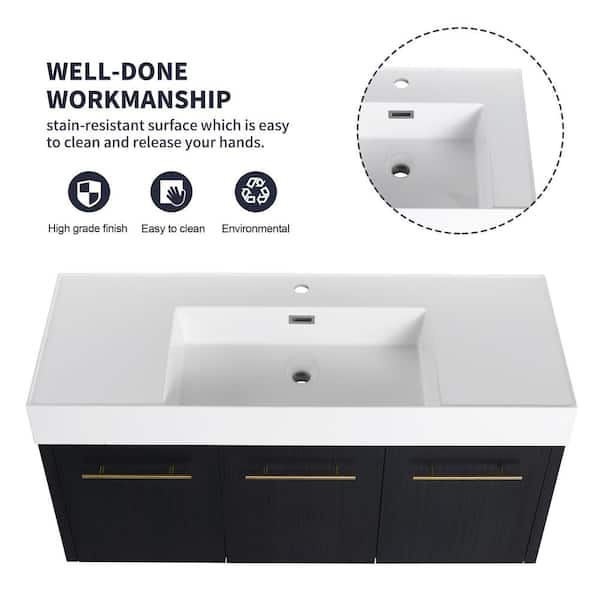 47.3 in. W x 18.1 in. D x 22.4 in. H Wall Mounted Bath Vanity in Black with White Cultured Marble Top