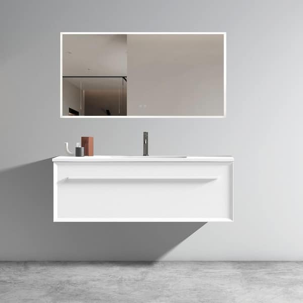 48 in. W x 18 in. D x 17 in. H Single Sink Wall-Mounted Bath Vanity in White with White Solid Surface Top