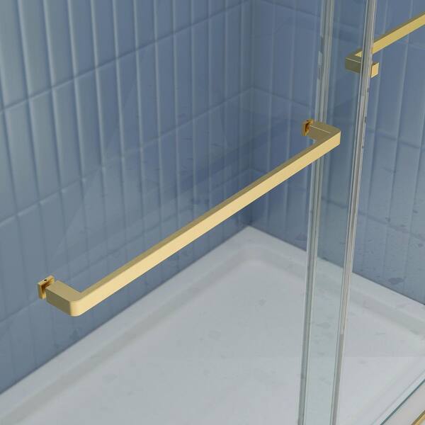 48 in. W x 74 in. H Sliding Frameless Shower Door in Brushed Gold Finish with Clear Glass