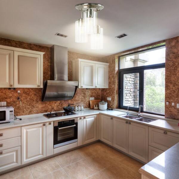 5 in. 3-Light Silver Modern Semi-Flush Mount With Clear Glass Shade and No Bulbs Included