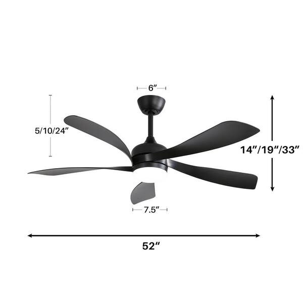 52 in. Indoor Black Modern Ceiling Fan with LED Light, 3 Color Temperature Settings with Remote Control Included