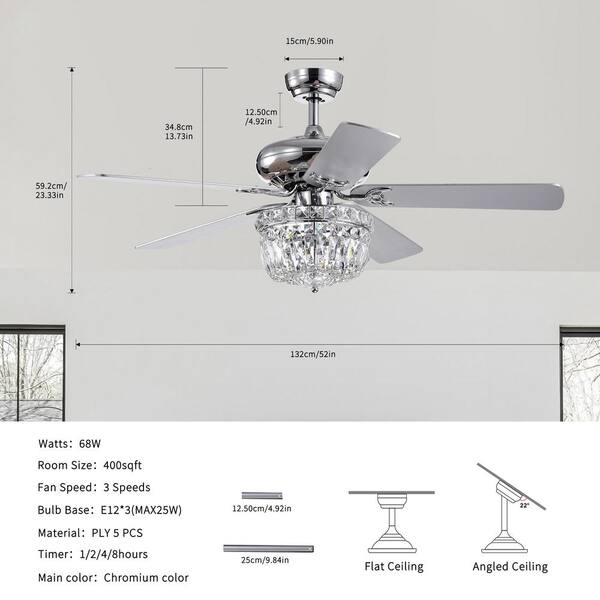 52 in. Smart Indoor Chrome Crystal Ceiling Fan with Integrated LED with Remote Control(Bulb Not Included)