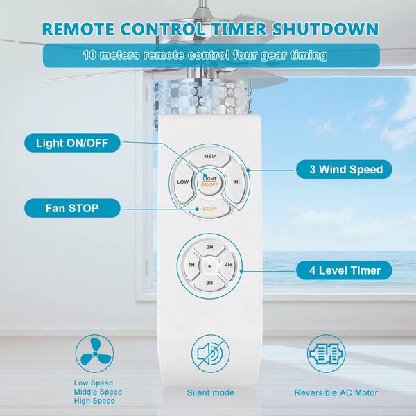 52 in. Smart Indoor Chrome Crystal Elegant Ceiling Fan with Remote Control (Bulb Not Included)