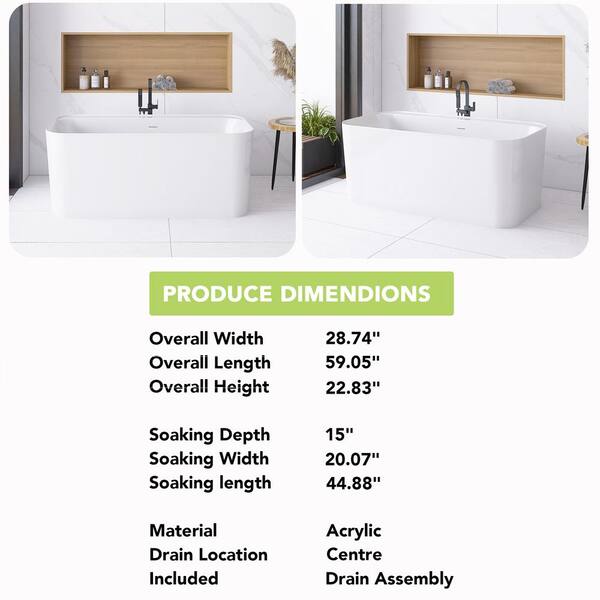 59 in. x 29 in. Freestanding Acrylic Soaking Bathtub in Glossy White