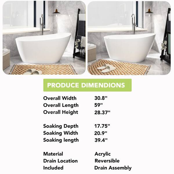 59 in. x 31 in. Soaking Bathtub with Reversible Drain in Glossy White/Polished Chrome