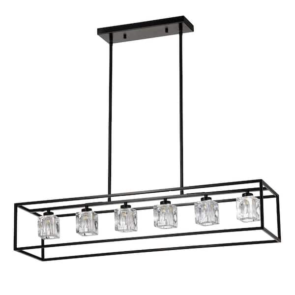 6-Light Matte Black Farmhouse Chandelier with 6*G9 Bulbs, Clear Glass Shades, for Dining Room, Kitchen Island, Bar
