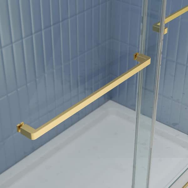 60 in. W x 74 in. H Sliding Frameless Shower Door in Brushed Gold Finish with Clear Glass