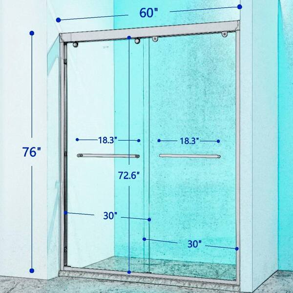 60 in. W x 76 in. H Double Sliding Frame Shower Door in Chrome Finish with Clear Glass