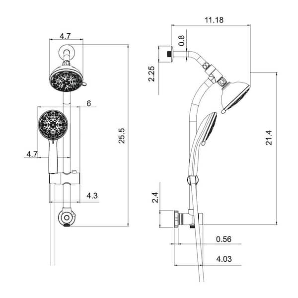7-Spray 4.7 in. Wall-Mounted Dual Fixed and Handheld Shower Head 1.8 GPM with Adjustable Slide Bar in Brushed Nickel