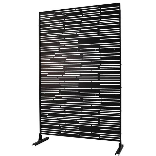 76 in. H Black Steel Garden Fence Freestanding Decorative Patterns Privacy Screen