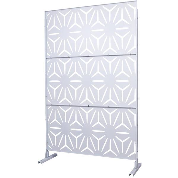 76 in. H White Steel Garden Fence Freestanding Decorative Patterns Privacy Screen