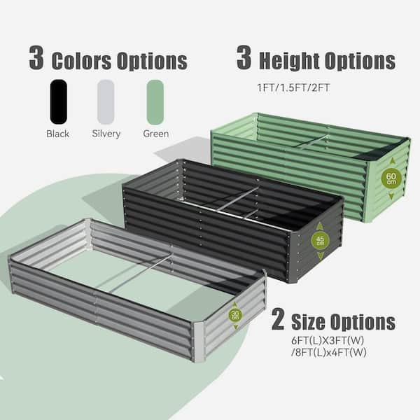 8 ft. x 4 ft. x 1 ft. Gray Galvanized Steel Rectangular Outdoor Raised Garden Bed