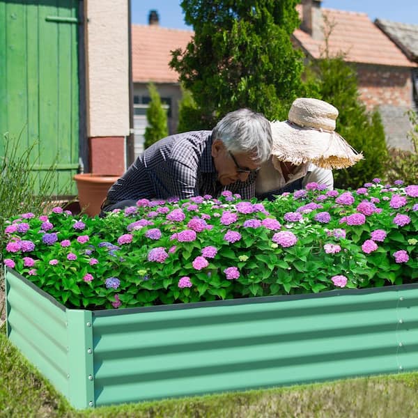 8 ft. x 4 ft. x 1 ft. Green Galvanized Steel Rectangular Outdoor Raised Garden Bed