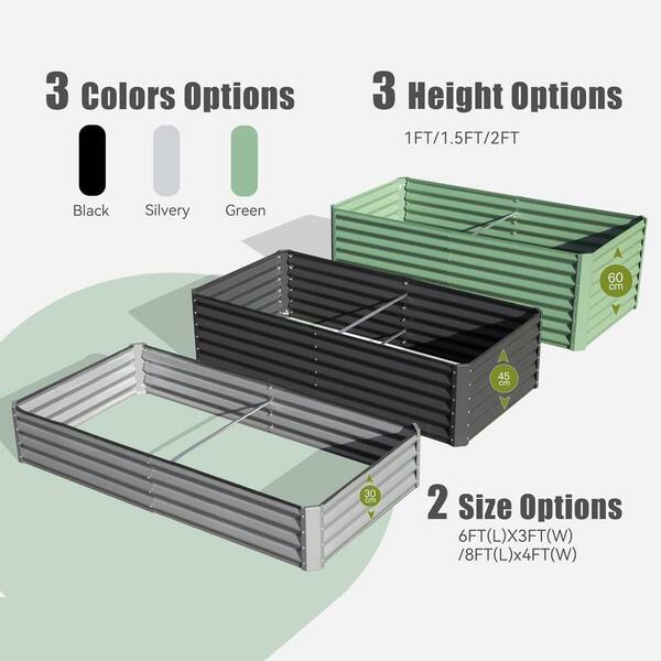 8 ft. x 4 ft. x 1 ft. Silver Galvanized Steel Rectangular Outdoor Raised Garden Bed