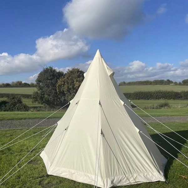 9.85 ft. x 9.85 ft. White Glamping Tent with Aluminum Pole