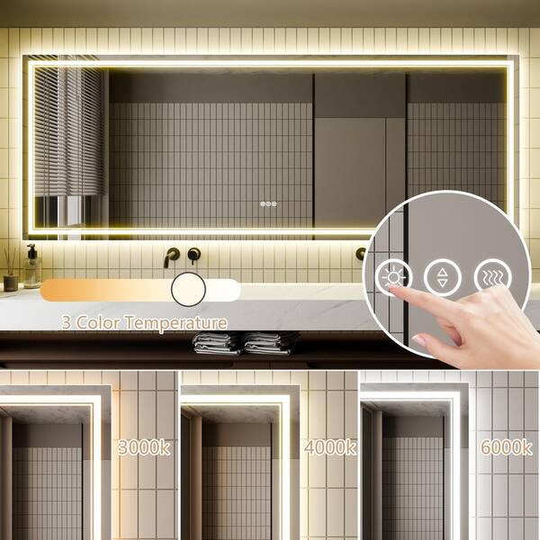 96 in. W x 36 in. H LED Rectangular Frameless Anti-Fog Wall-Mounted Bathroom Vanity Mirror in White