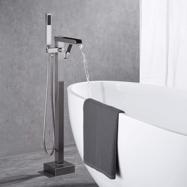 Single-Handle Bathroom Freestanding Tub Faucet with Hand Shower in Brushed Nickel