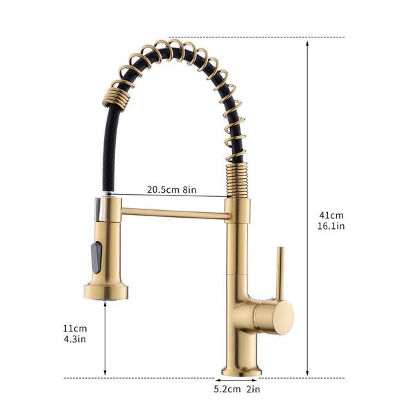 Single Handle High Arc Pull Out Sprayer Kitchen Faucet in Gold