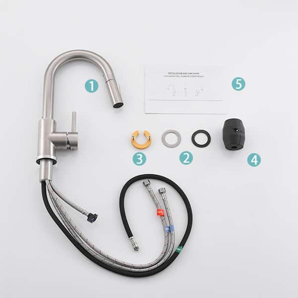 Single Handle Pull Down Sprayer Kitchen Faucet with Advanced Spray in Brushed Nickel