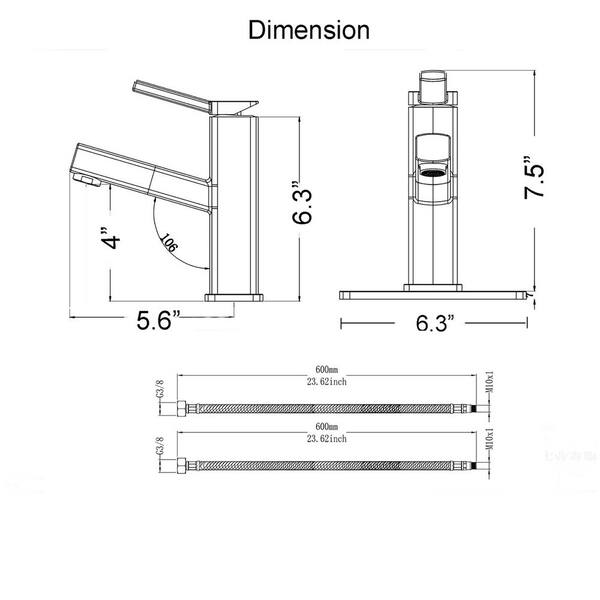 Single Handle Single Hole Bathroom Faucet with Supply Line Included in Matte Black