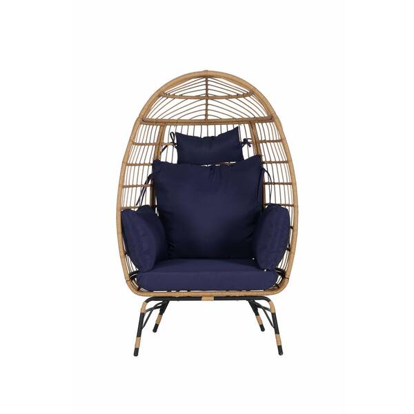 Steel Patio Swing Egg Chair with Dark Blue Cushion
