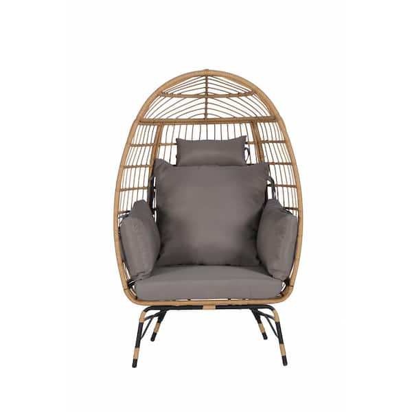 Steel Patio Swing Egg Chair with Dark Gray Cushion