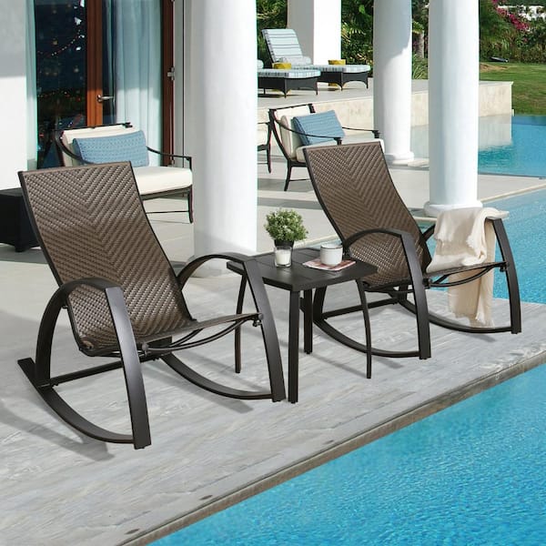 Steel Wicker Outdoor Rocking Chair Set with Side Table (3-Piece)