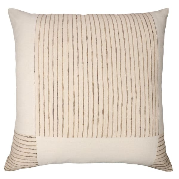 Stella White/Beige Checkered Hand-Woven Polyfilled Indoor 24 in. x 24 in. Throw Pillow