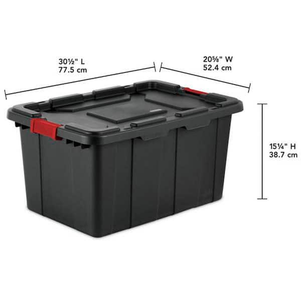 27-Gallon Durable Rugged Industrial Tote w/Red Latches in Black (4 Pack)