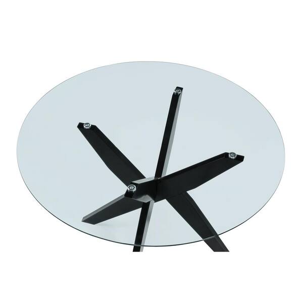 Amalie 48 in. Glass Round Dining Set 5 Pieces with 4 Grey Upholstered Side Chairs