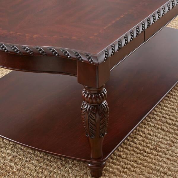 Antoinette 55 in. Cherry Large Rectangle Wood Coffee Table with Shelf