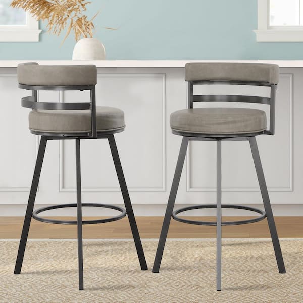 Gene 30 in. Charcoal Low Back Metal Swivel Bar Stool