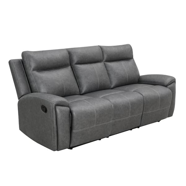 Gaston 87 in. Flared Arms Polyester Leather Gray Rectangle Sofa Manual Recliner