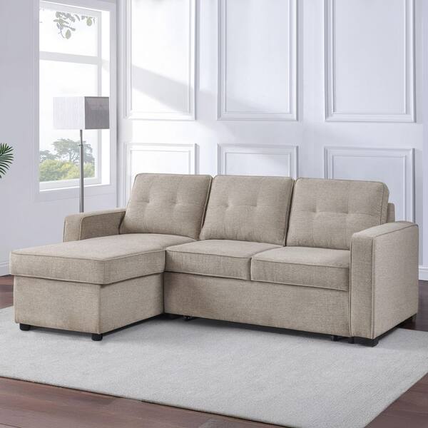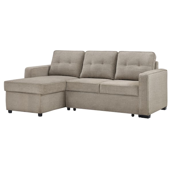 Noah 88 in. Tan Brown Polyester Sofa with Full Sleeper Sofa
