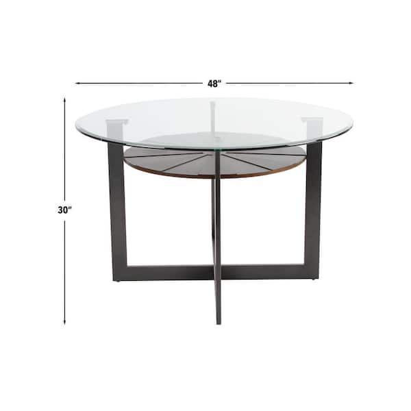 Olson Glass Top Gray Metal Trestle Base Dining Table Seats 4